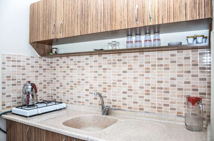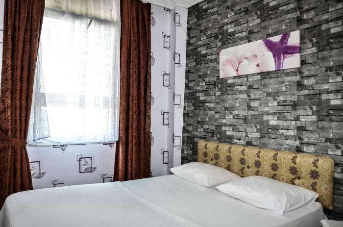 1 oda + 1 salon, mutfak ve banyo-tuvaletten oluşan suit dairelerimizin tümü deniz manzaralı ve balkonludur. Mutfağınızda her çeşit mutfak eşyası buz dolabı ve ocak bulunmaktadır. Salon kısımlarında TV ve klima mevcuttur. Apartlarımız toplam 4 kişilik olup ilave yatak ücrete tabidir.